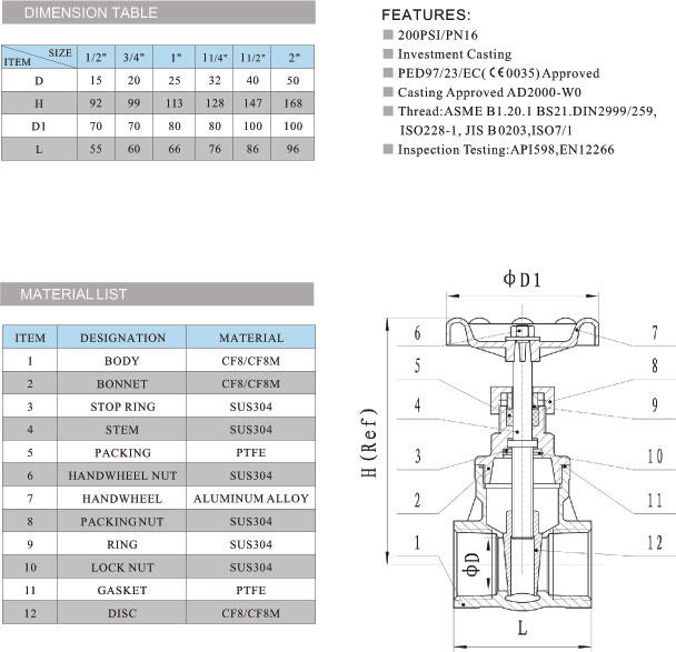 8)Type: | 1PC BALL VALVE, 2PC BALL VALVE, 2PC BALL VALVE LIGHT DUTY, 2PC BALL VALVE DIN3202 TYPE, 3PC BALL VALVE, 3PC BALL VALVE WITH DIRECT MOUNTING PAD, 3-WAY BALL VALVE( L & T TYPE), 2PC FLANGE BALL VALVE ( JIS, ANSI, DIN); 3PC FLANGE VALL VALVE( JIS & ANISI & DIN); MINI BALL VALVE, BIBCOCK VALVE, GATE VALVE; GLOBE VALVE; SWING CHECK VALVE; 1PC SPRING VERTICAL CHECK VALVE; 2PC SPRING VERTICAL CHECK VALVE; 3PC SPRING VERTICAL CHECK VALVE; Y-STRAINER; ETC. |